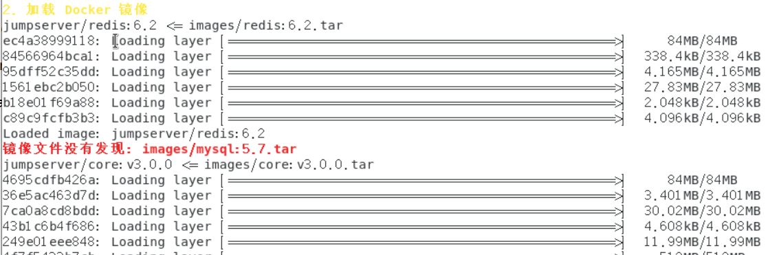 mysql:5.7.tar镜像文件,说明该镜像未包含在离线安装包中或未正确加载。 - 请确认您下载的 JumpServer 离线安装包完整,并包含所需的 Docker 镜像文件(如