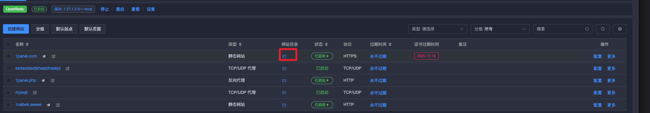那我有几个问题要问你 1.你是不是 IP 作为域名?IP 做域名需要设置为默认网站 2.你是代理了 1Panel 吗?重启面板不影响 openresty 的证书 3.证书目录在