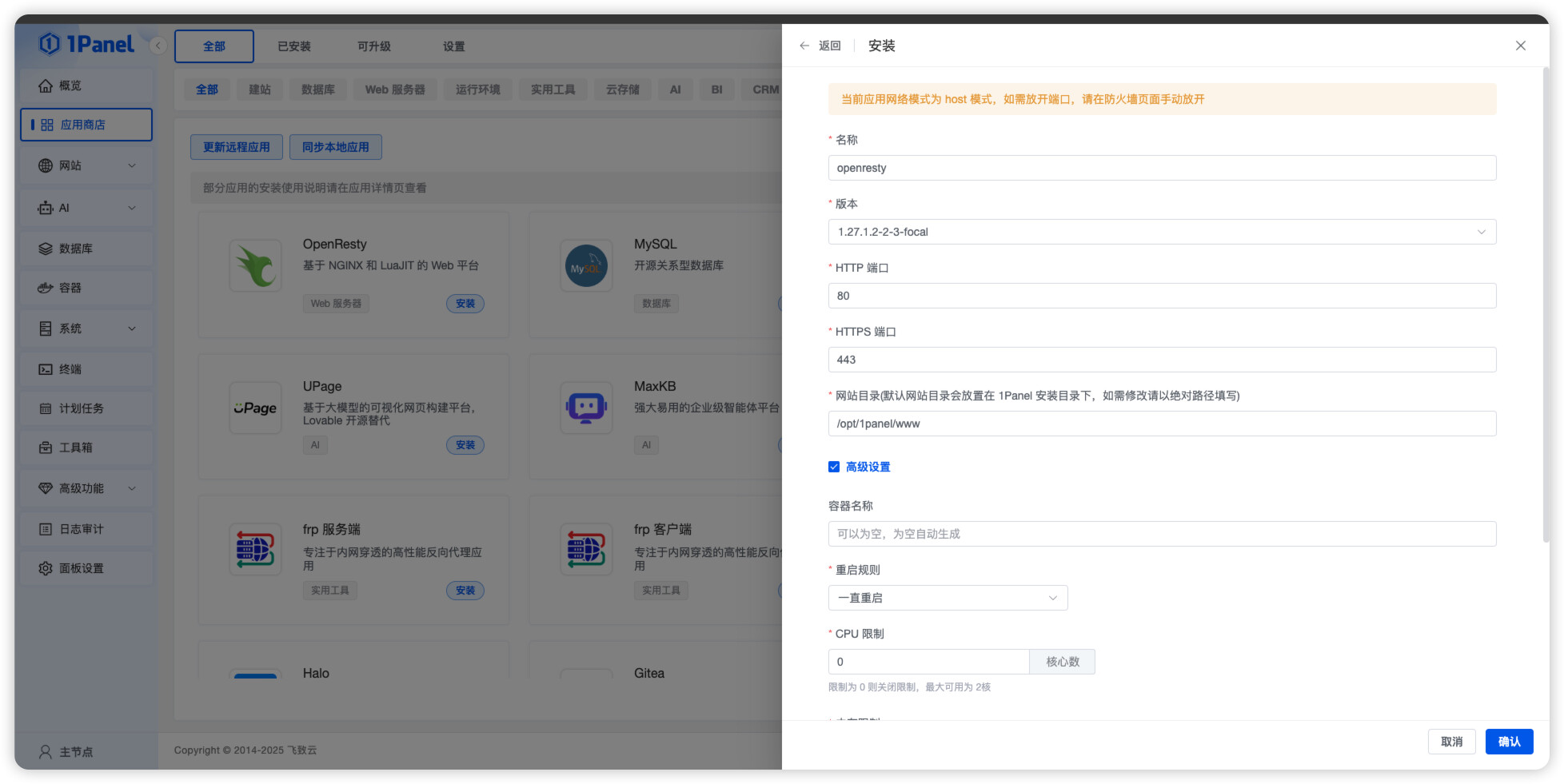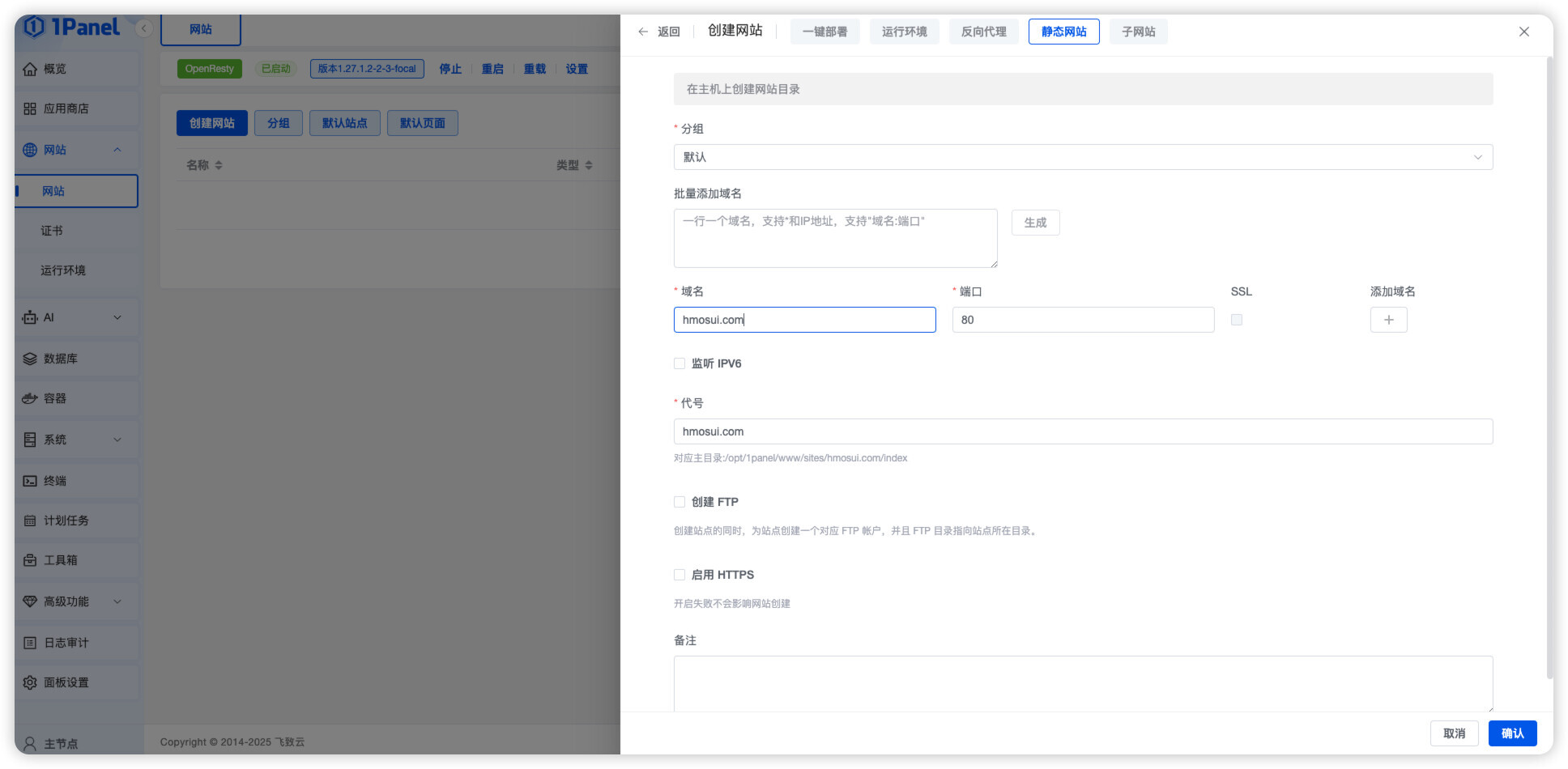 1Panel 版本:社区版 v2.0.11