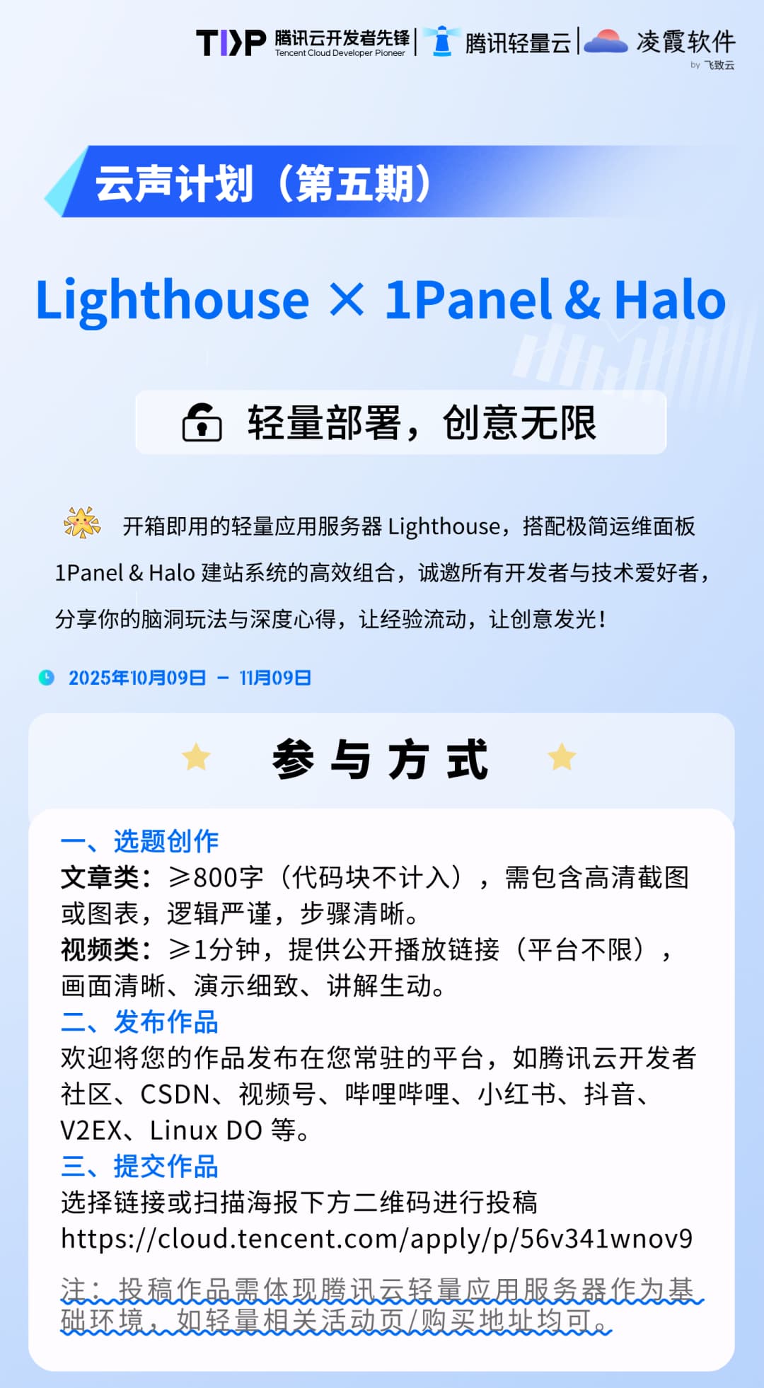 🎁 有奖征文,截止 2025-11-09|携手腾讯云TDP、腾讯轻量云联合呈现