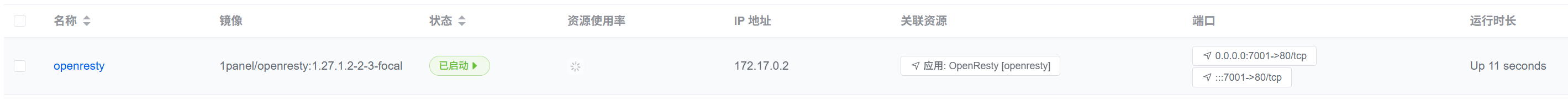 安装openresty 创建网站(静态网站) 都是正常的,日志没有任何报错,但是创建后openresty容器没有端口映射,浏览器不能访问,要手动删除openresty 容器然后自己给容器加上端口映射才能正常访问。是不是有哪里配置端口映射