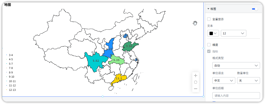 求助,如何实现dateease中中国地图只显示有数据的省份名称,现在地图上没有数据的省份也有显示
