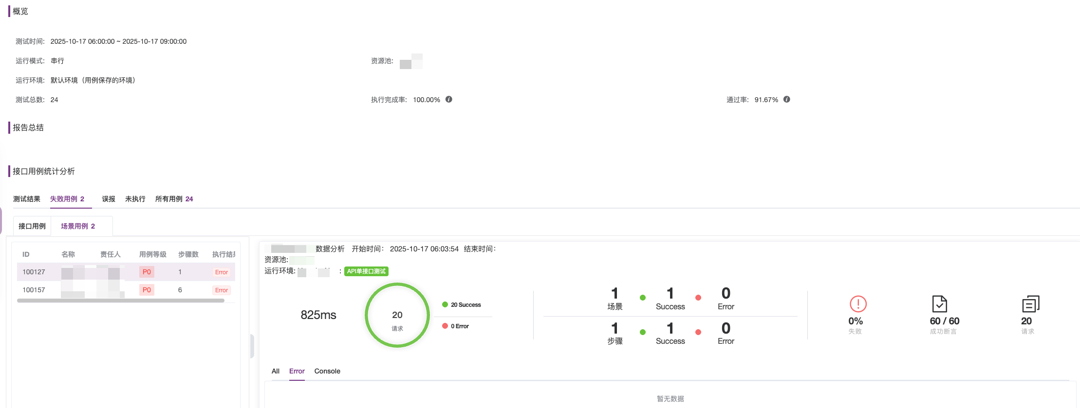 我的测试接口全部执行成功,没有error,但是在测试报告里却 存在error的场景是什么原因呢?