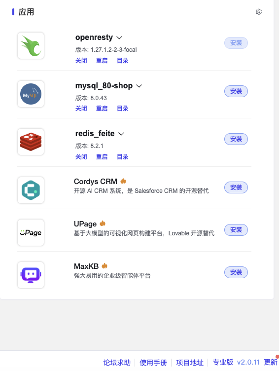应用安装失败等问题请参考 1Panel 问题排查思路