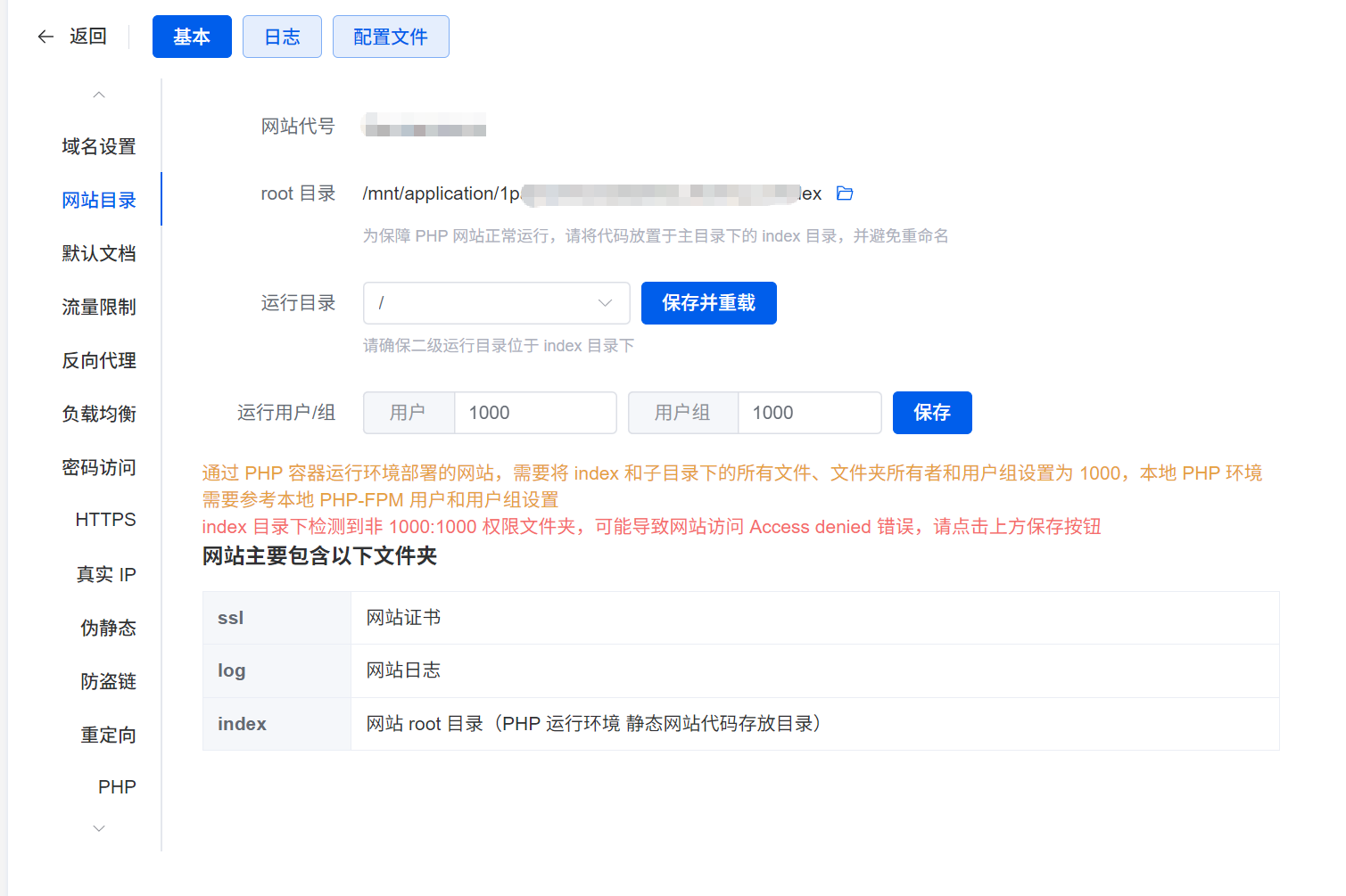 1panel网站目录页面显示index 目录下检测到非 1000:1000 权限文件夹…… 我点击保存之后没反应,而且OpenResty是用root用户启动的,目录权限也是给够的。同样的方法我单独使用nginx是可以的,在1panel中打开目录索引功能就不行。