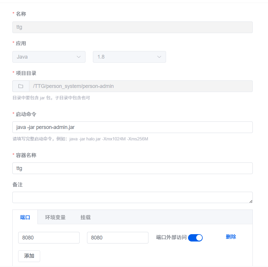 1Panel 创建java运行环境 报错Error: Unable to access jarfile person-admin.jar