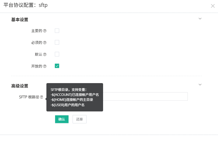 使用WEB SFTP给Linux服务器传输文件,在平台管理中创建了一个新Linux平台,如何设置可以让用户看到根目录下的全部目录