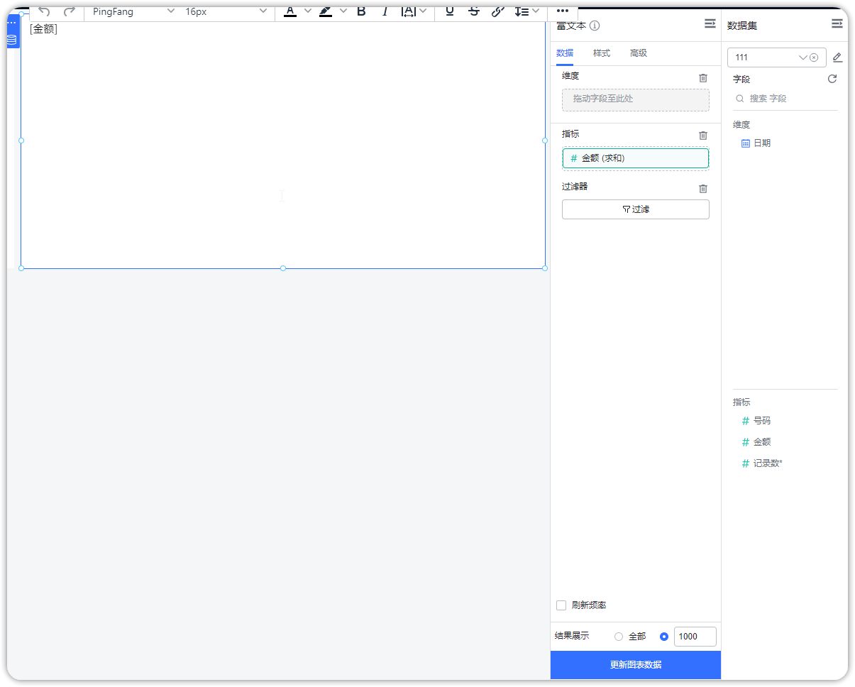在富文本中导入数据集后,更新图表数据后正常出现,这边没有复现,可以描述的更详细一些,或者录个视频吗