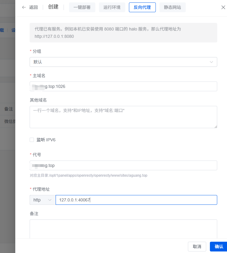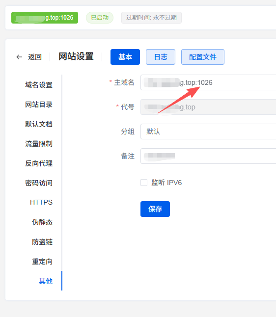 给网站设置了反代,外部端口1026,内部端口40067。配置了ssl证书,通过