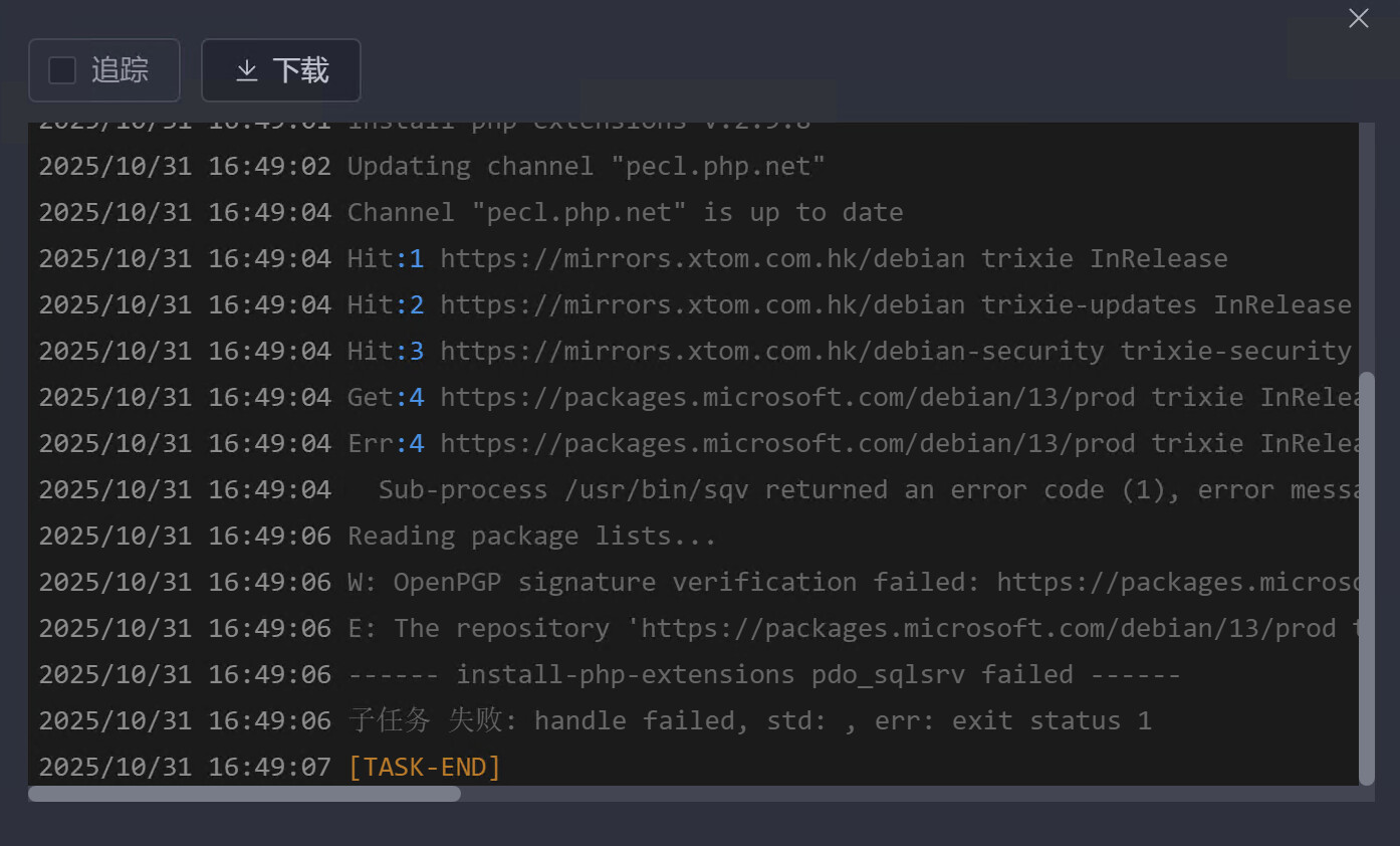 2025/10/31 15:15:19 安装运行环境扩展 [pdo_sqlsrv] 任务开始 [START]