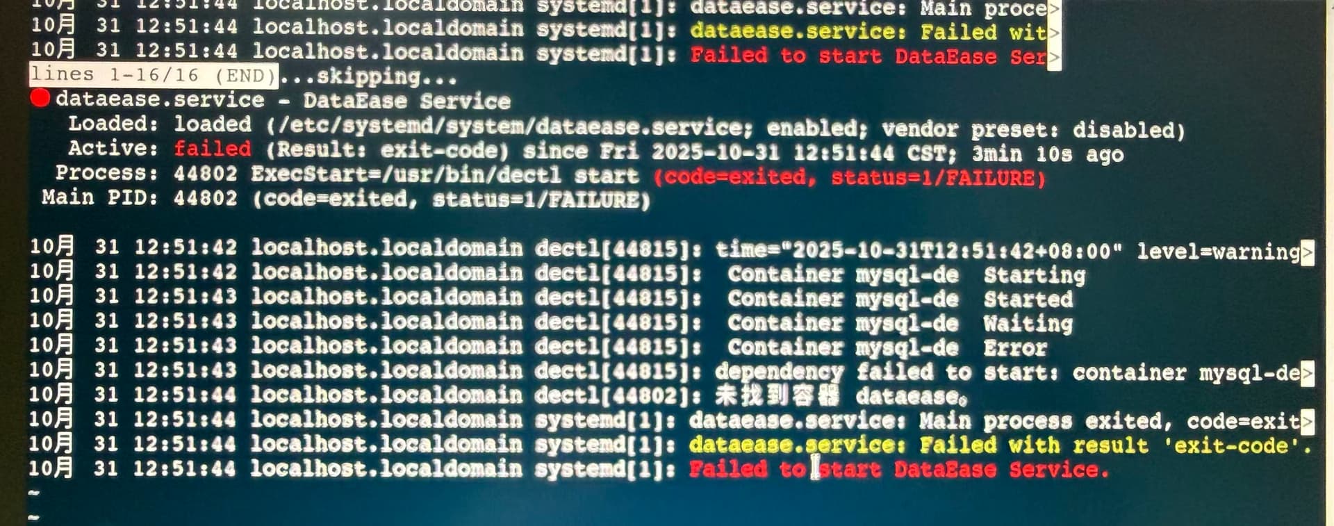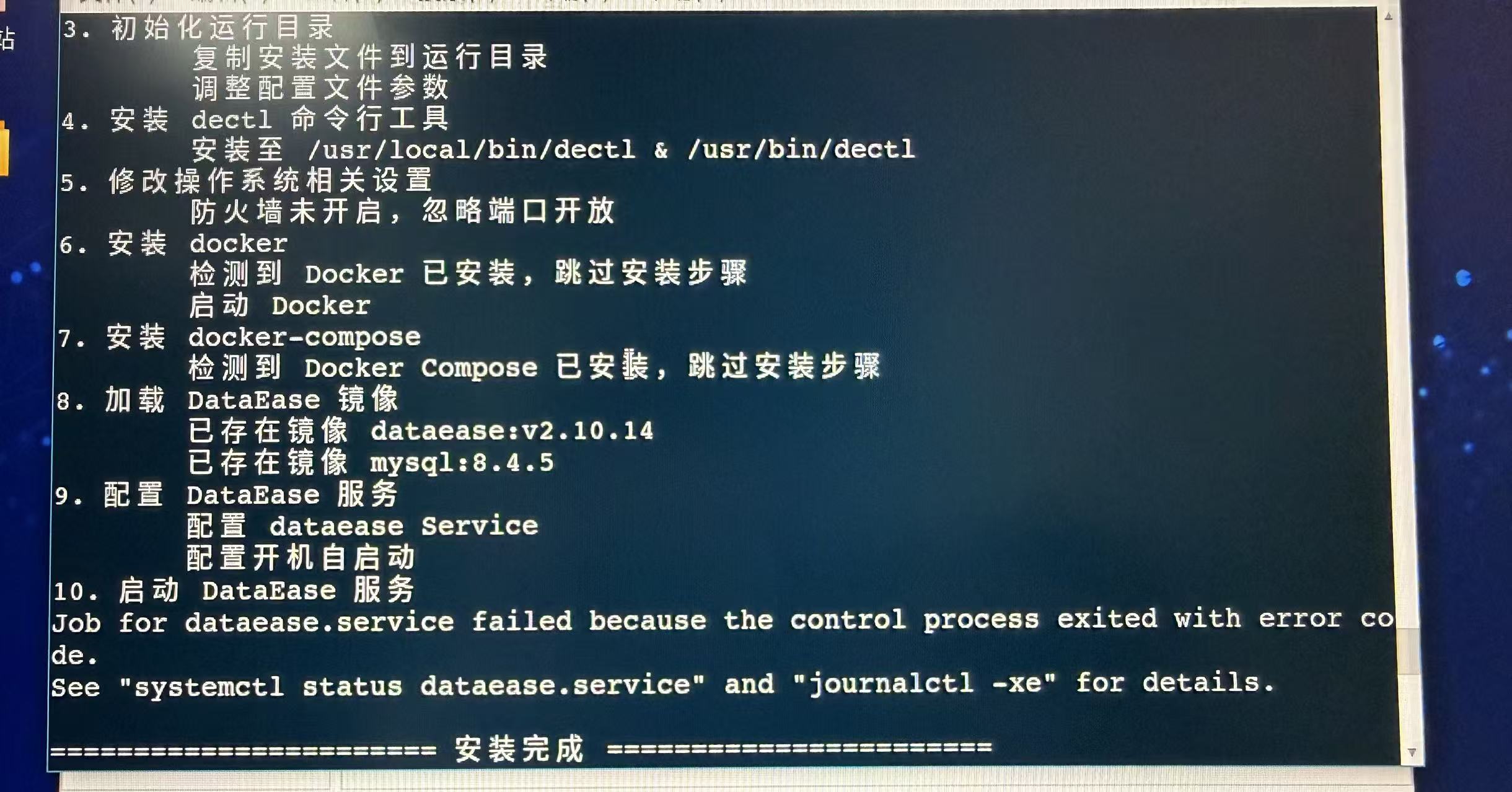 dateease安装失败,未找到容器dataease