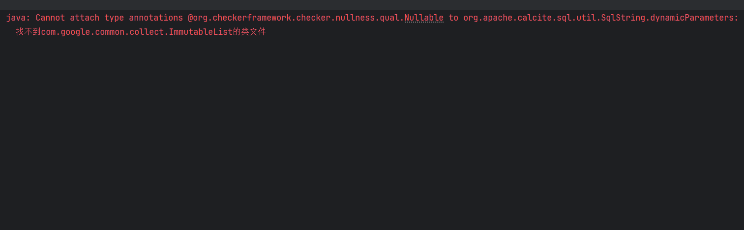 java: Cannot attach type annotations @org.checkerframework.checker.nullness.qual.Nullable to org.apache.calcite.sql.util.SqlString.dynamicParameters: