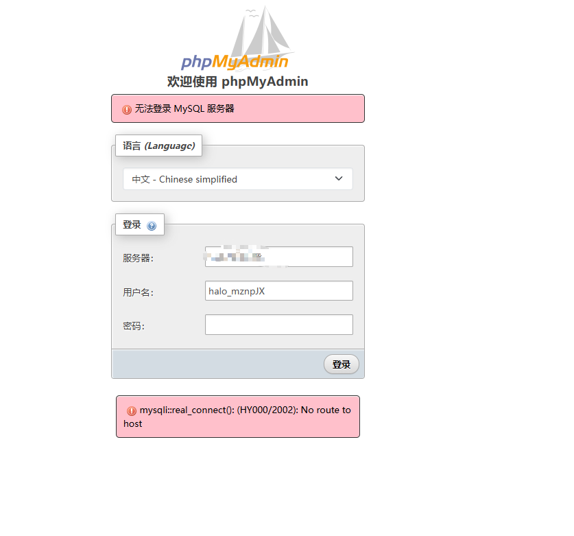 无法连接到数据库,肯定返回登陆页面。 应该是你的服务器填写错误,正确的填写内容应该为: