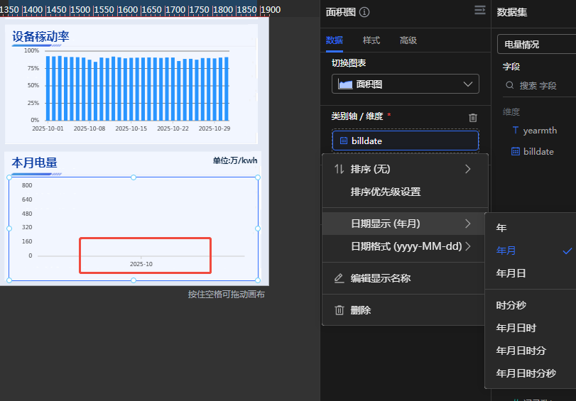 设置后图表数据会变,按月汇总了,不是按天展示