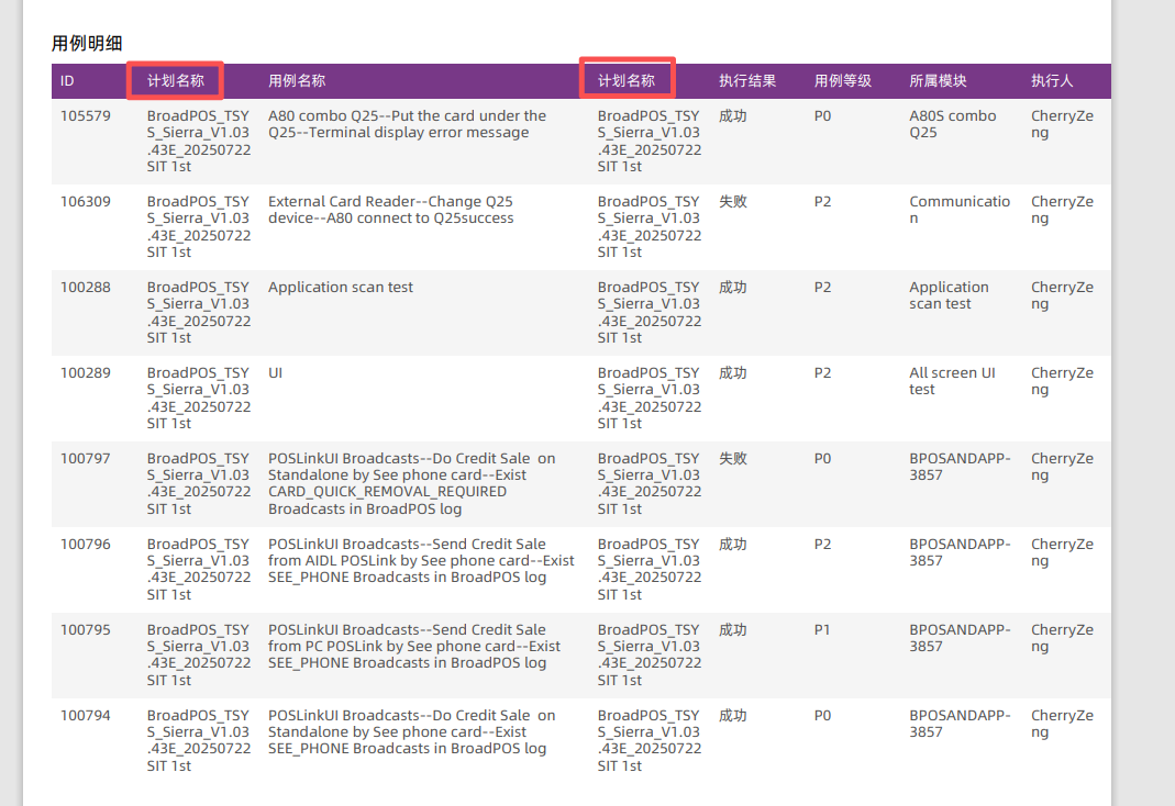 3.导出的PDF报告中,用例明细中显示2个计划名称