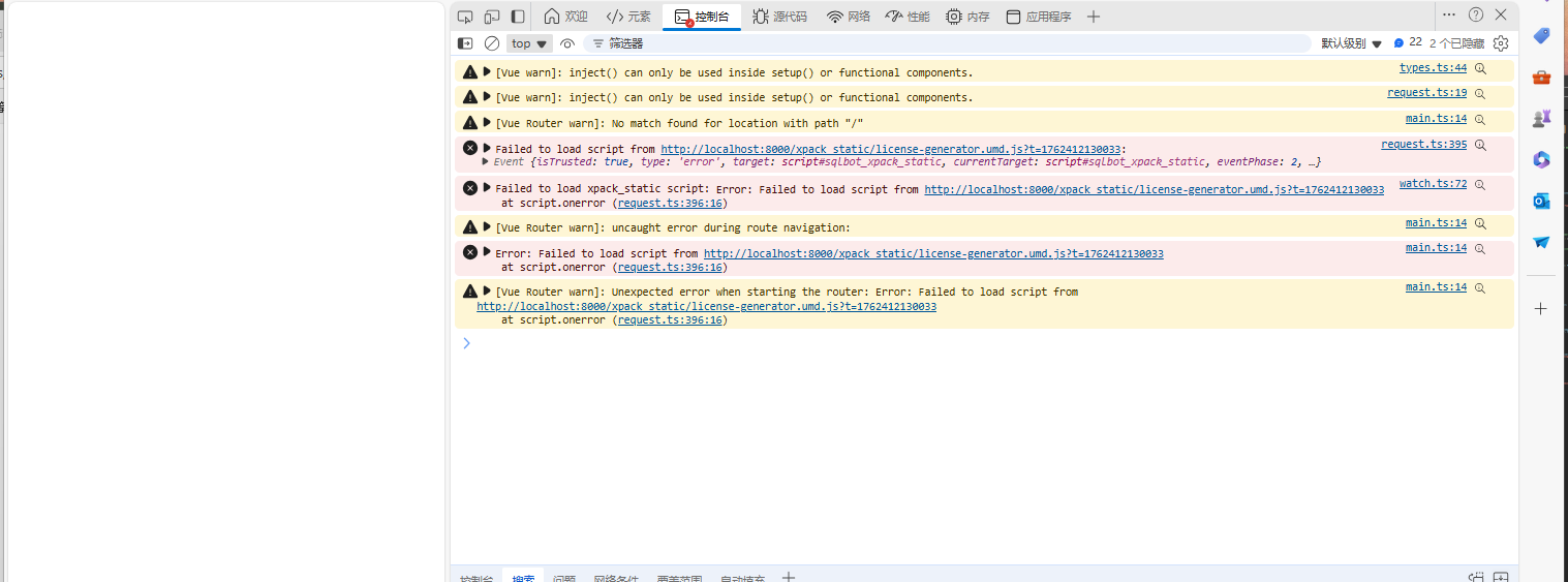 就是出现这个错误但是我的,后端没接收到错误也就算了,前端也正常启动但是这个问题这个,静态文件还是这个问题,怎么解决