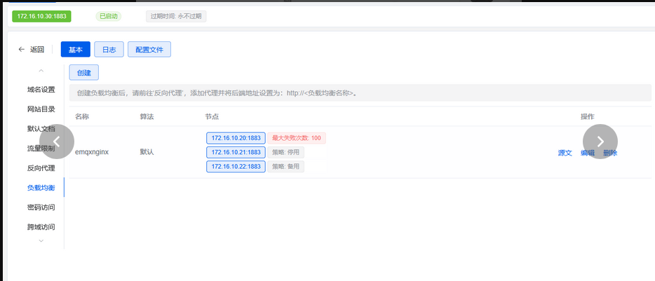现在要使用OpenResty搭建负载均衡业务,通过在OpenResty创建网站加端口1883,负载后端三台机器1883端口。现在我创建了网站添加负载均衡和反向代理,但是我测试连不上OpenResty的ip+1883端口。请问各位大师们有解决办法?