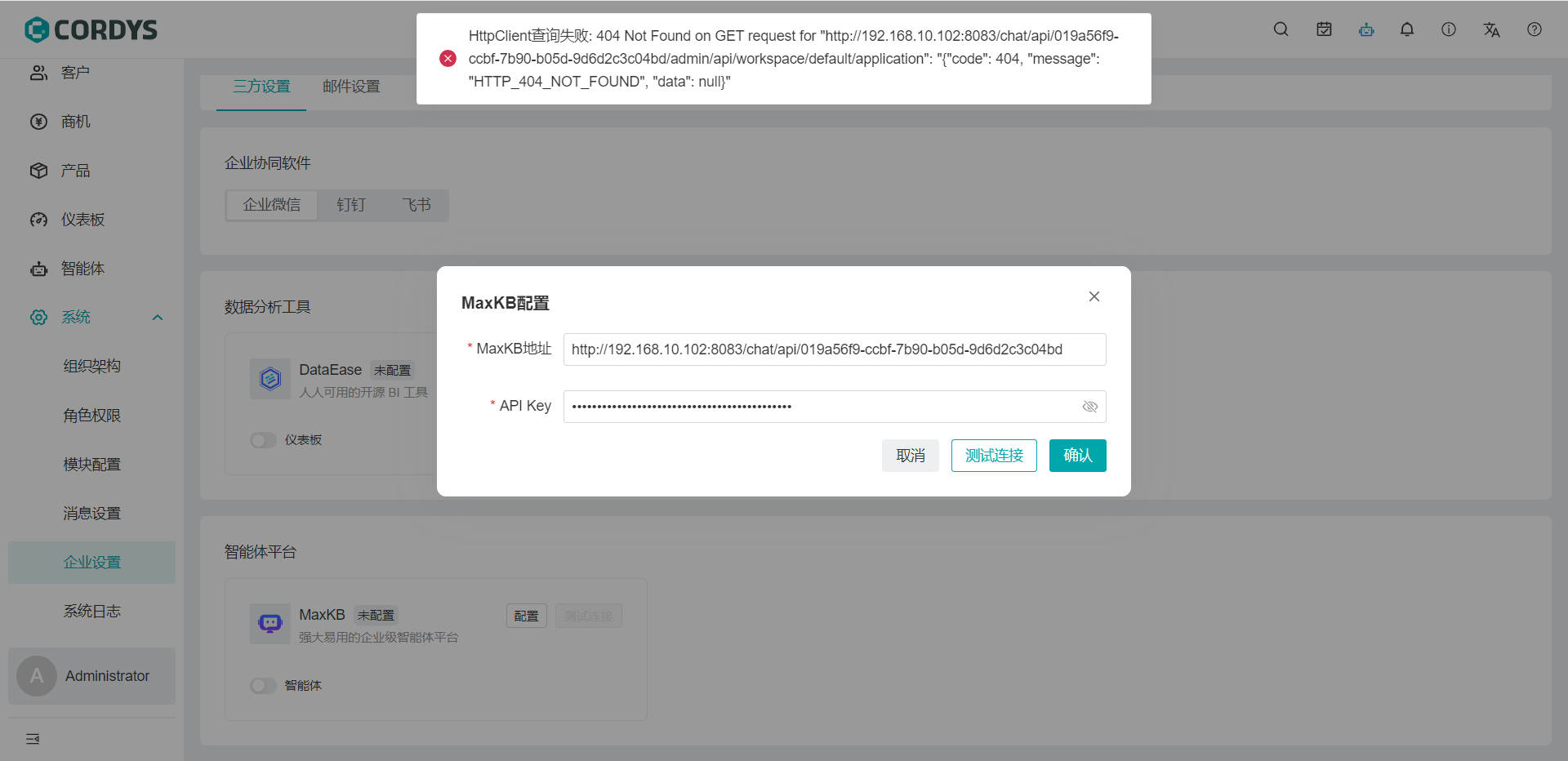配置MaxKB的时候提示:HttpClient查询失败