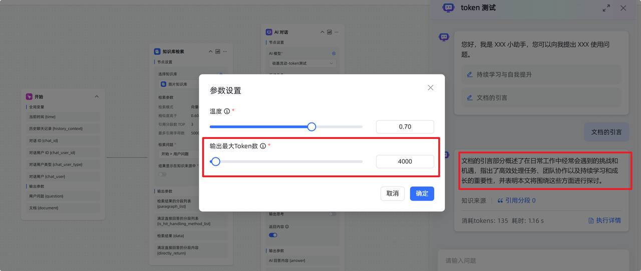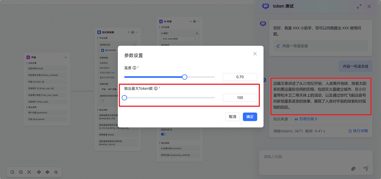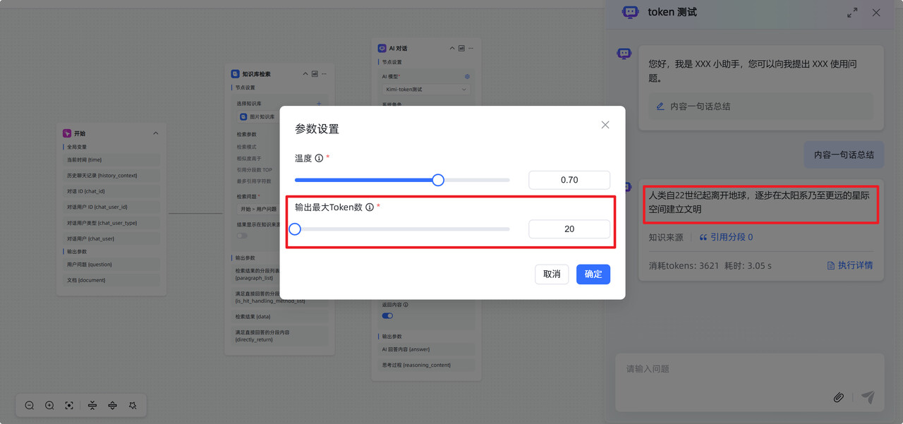问题描述:AI 对话节点设置的 max_tokens 不够大,导致生成的内容被截断。