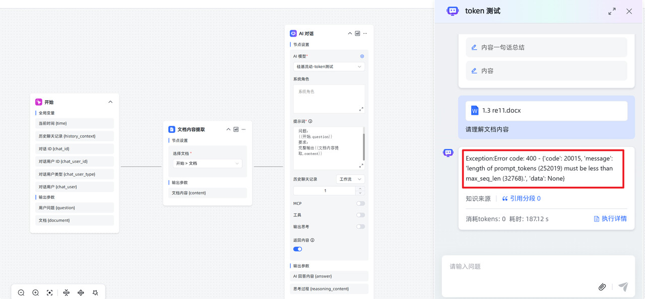 问题描述:文档内容过多,一次处理的 token 数(包括输入和输出)超过模型的 max_seq_len 的硬限制。