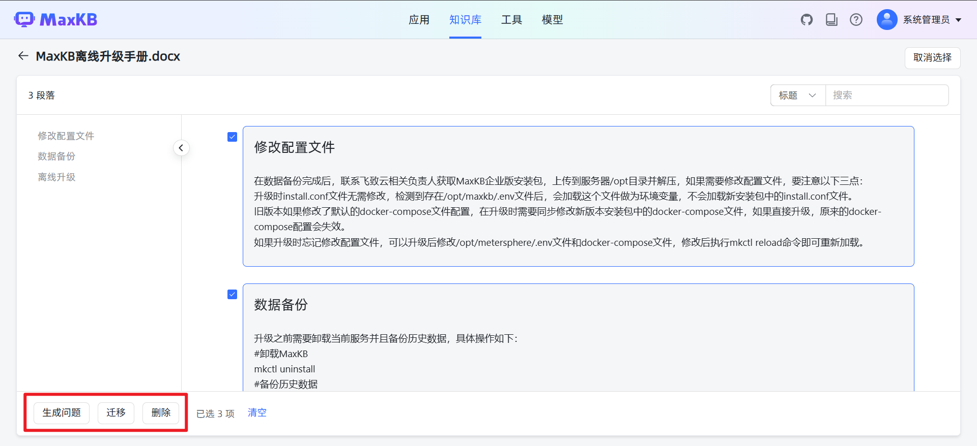 另外,建议知识库管理的解析文本块增加全选功能