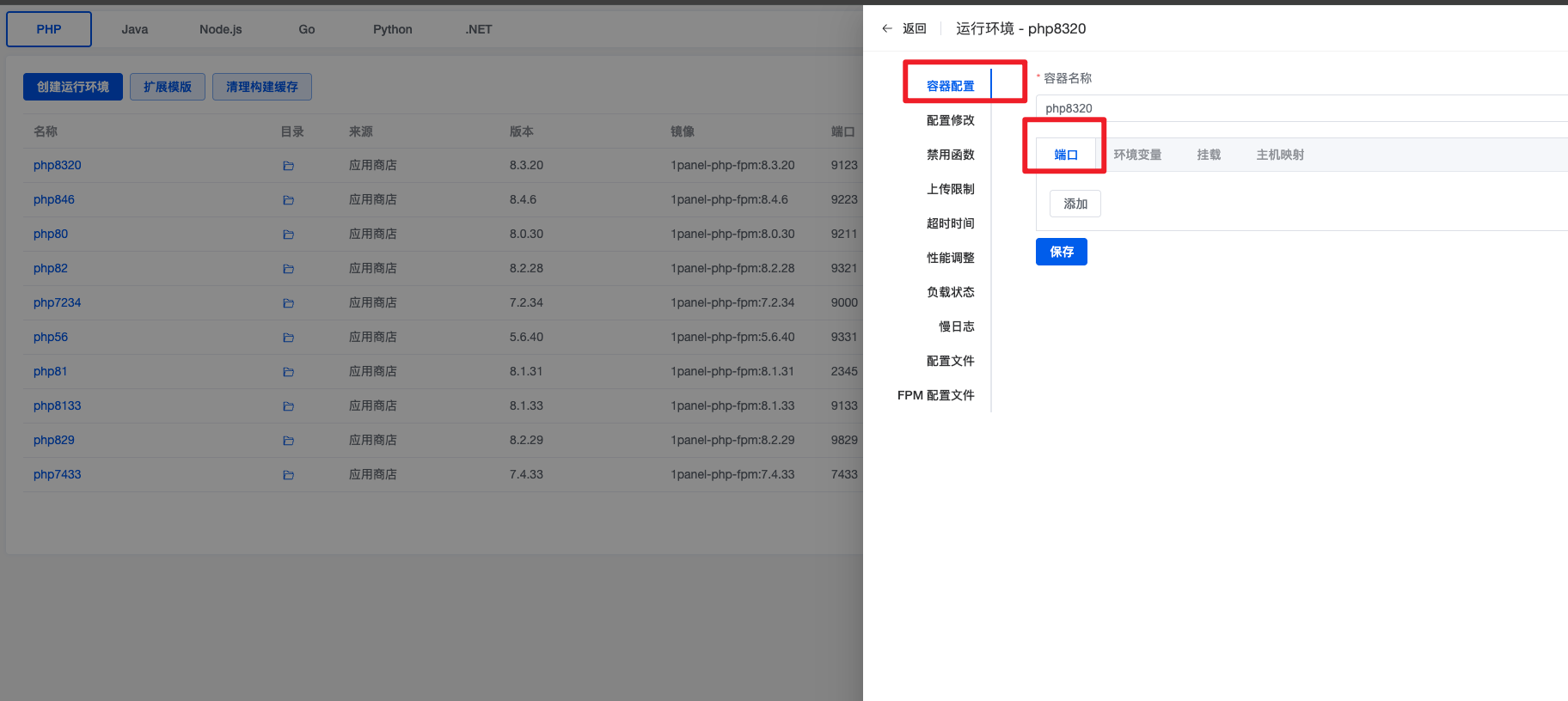 我预期给PHP-FPM 容器增加一个9001端口来进行多pool管理。但是当我增加端口的时候报错。 1Panel 版本:v2.0.12 操作系统(设备): debian12 关键截图: