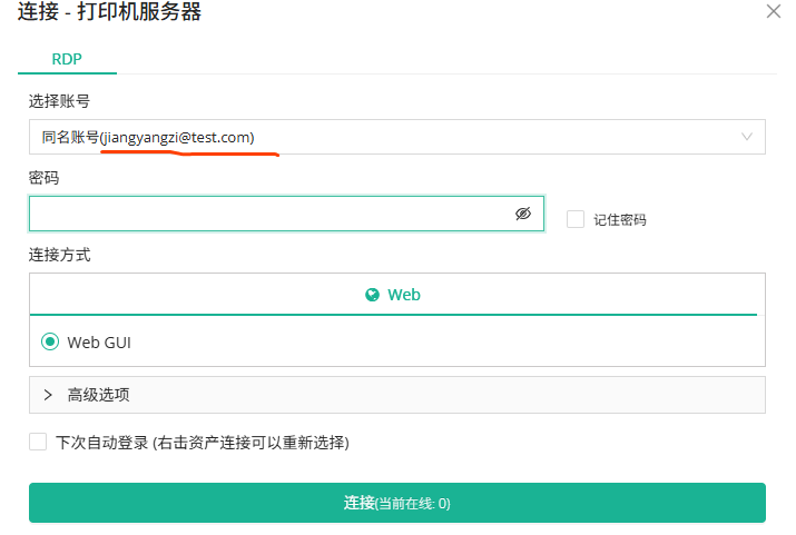 4.访问资产,选择同名账号。这里展示的账号名是对的,“登录账号名@AD域名”