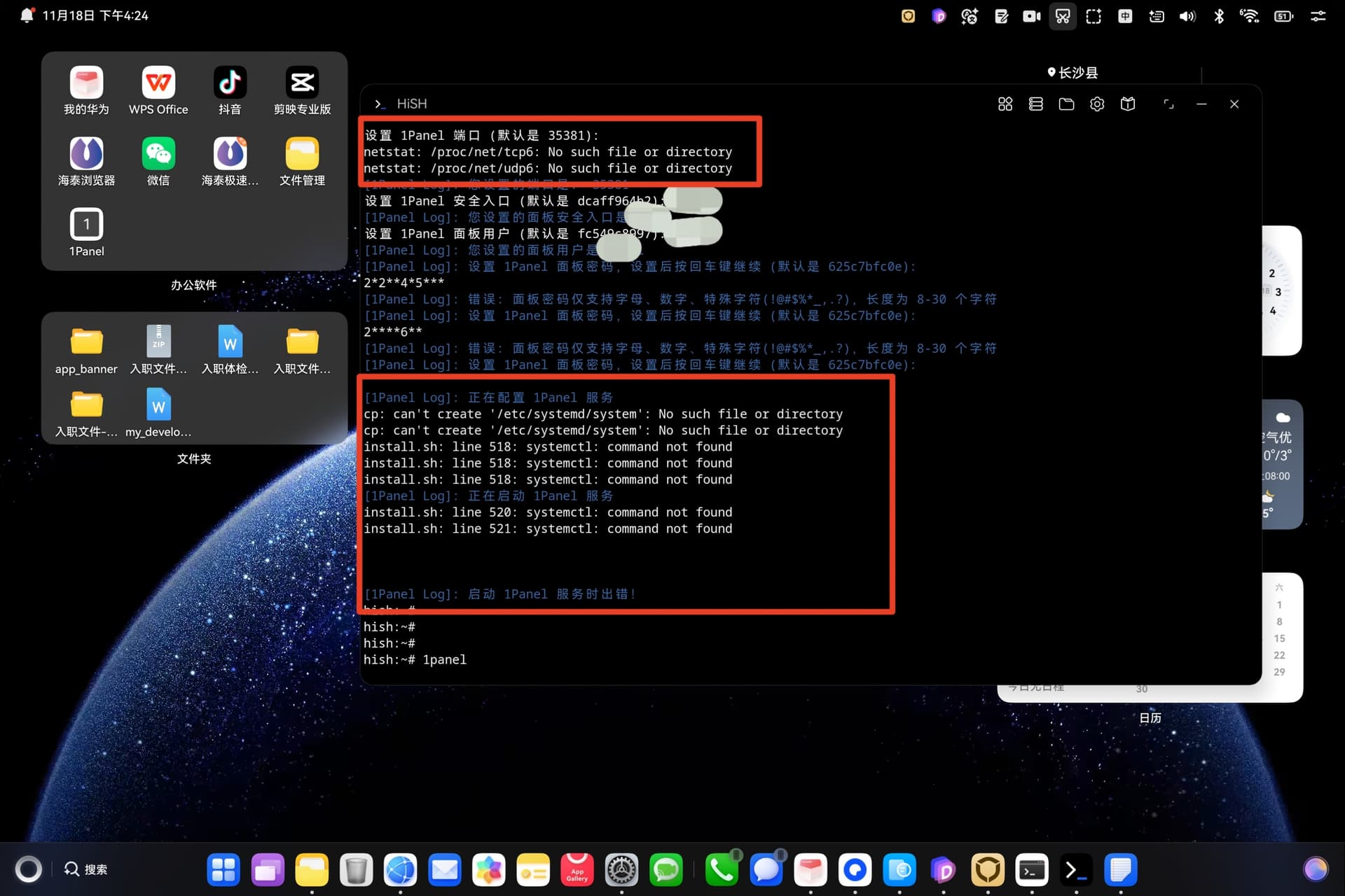 安装1panel面板这些地方的时候报错了 我想问下有没有对linux比较熟悉的帮看看,需要怎么操作 ,安装完了启动不了