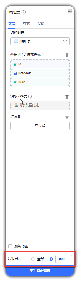 在结果展示这边可以手动修改展示数量也可以修改为全部