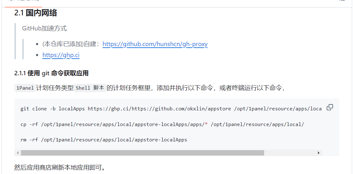 git clone -b localApps https://ghp.ci/https://github.com/okxlin/appstore /opt/1panel/resource/apps/local/appstore-localApps