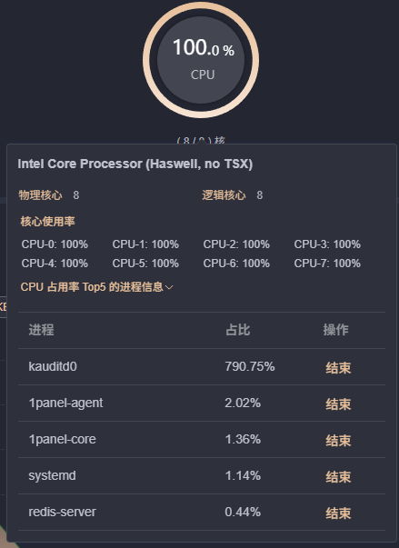 CPU一直100% 重启也一样 所有服务都关了还是一样