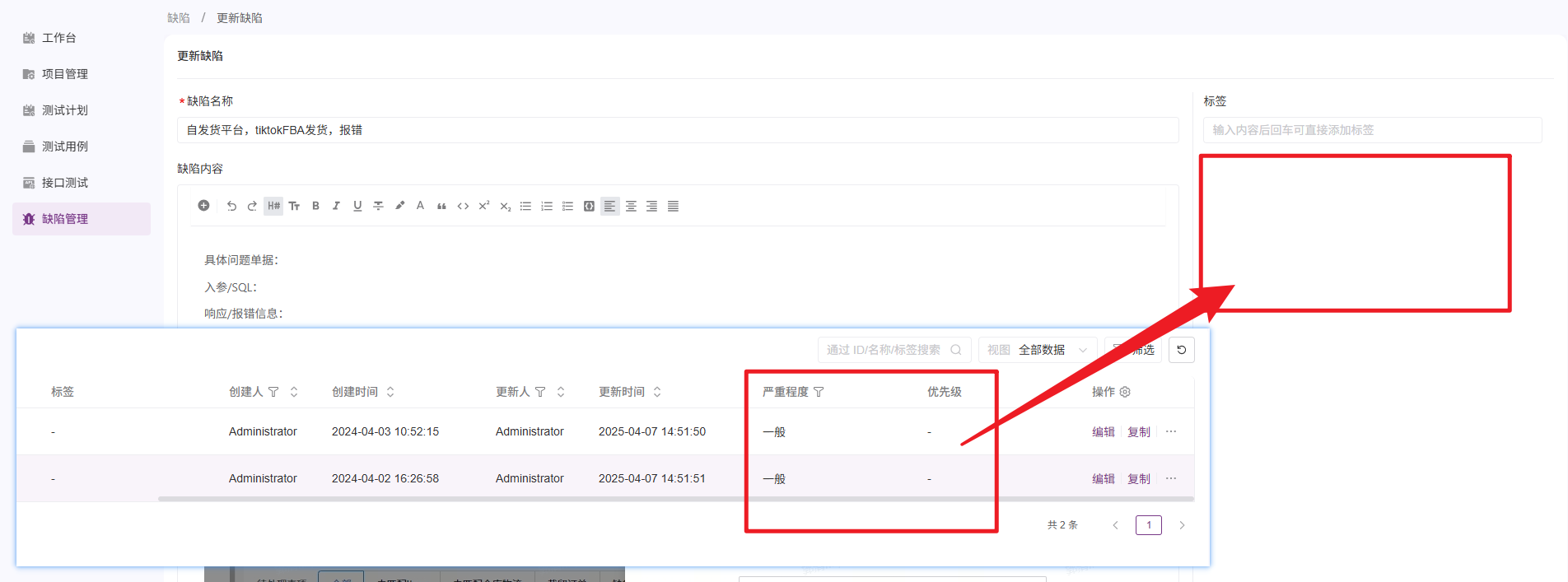 请问上传插件后,为什么缺陷列表的字段,点击编辑不显示出来呢??