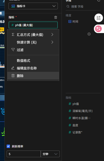 这里我想展示最新一条PH数据 不需要汇总方式 这里怎么选择呢