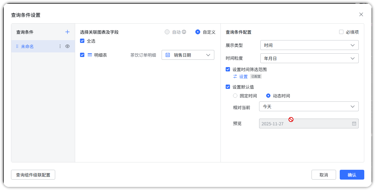 v2.10.14社区版,仪表板查询组件中,设置查询条件动态时间范围为当日。仪表板发布后,当日数据显示正常。不关闭分享链接页面,到第二天的时候,显示的还是前一天的数据。必须手动刷新网页后,才会正常更新为当天数据。