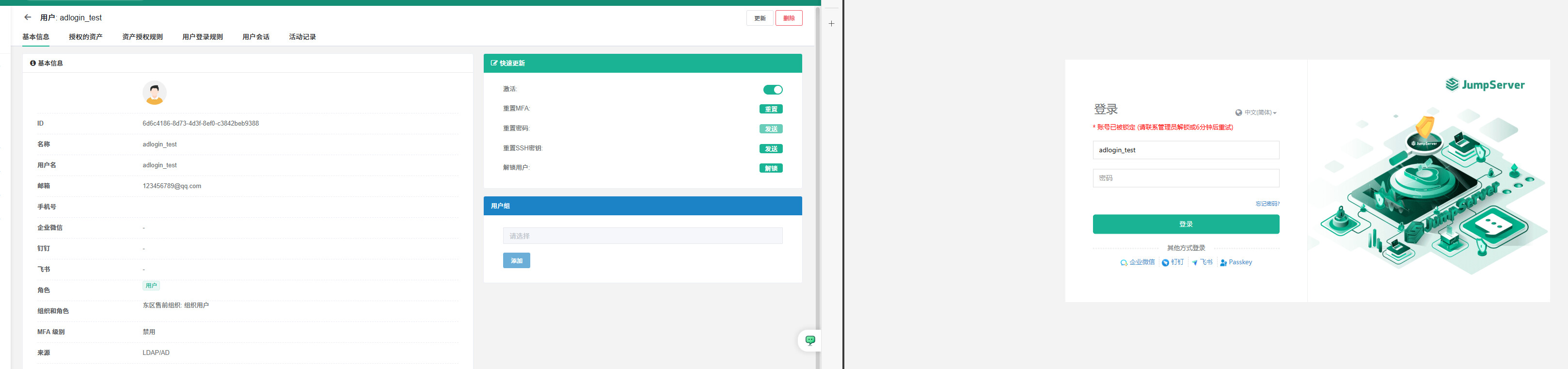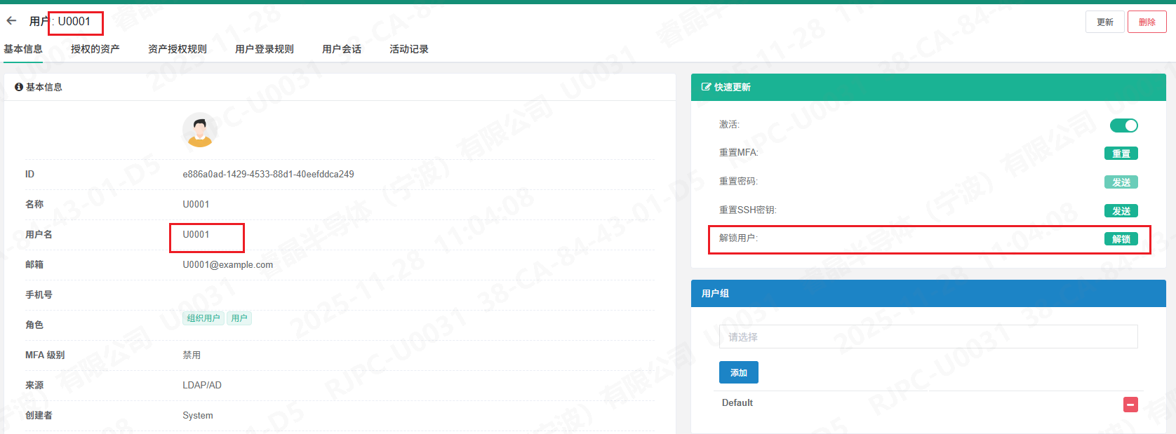 感谢大佬,用户锁定解锁按键灰色问题–能解不,jumpserver从版本3.10.5升级到3.10.19后,LDAP同步的用户锁定后无法解锁,解锁按键为灰色,测试本地新建用户锁定可以正常解锁,AD新建用户ldap同步用户锁定还是无法解锁,解锁按键灰色。(底层后台可以通过命令解锁成功)