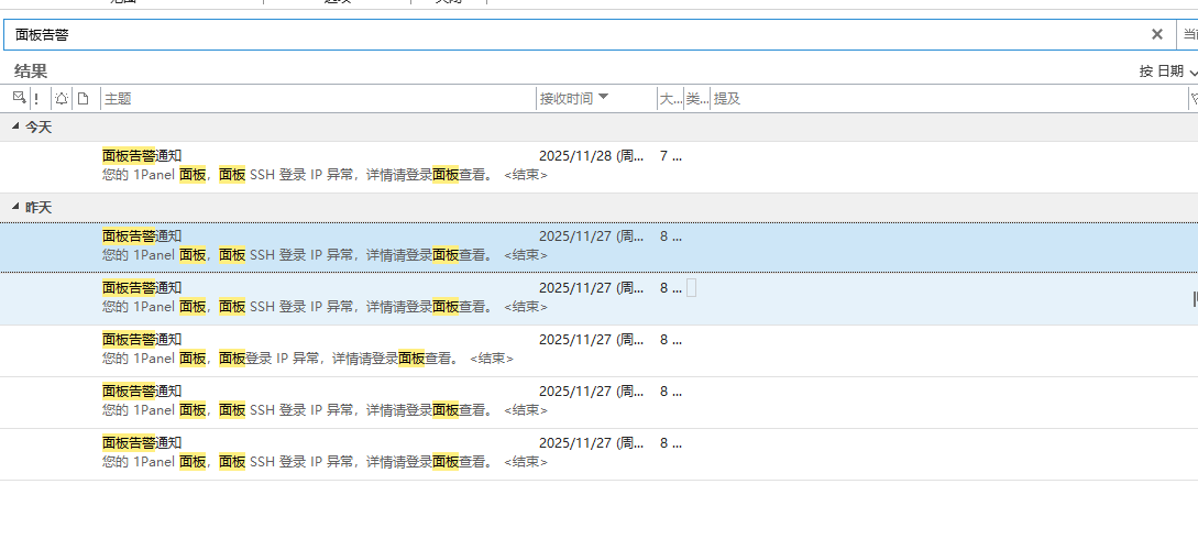 大家好,我刚使用1panel没多久,我们搭建了服务器,我设置了邮箱告警提示,近2天经常受到SSH IP登录告警提示,查看日志也没有什么特别?