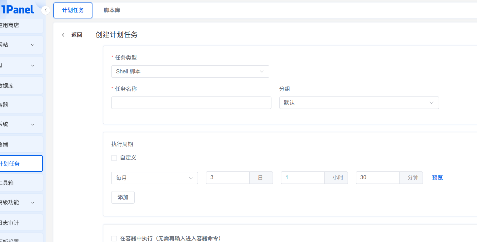 问下,怎么在计划任务里添加 重启php容器的命令?