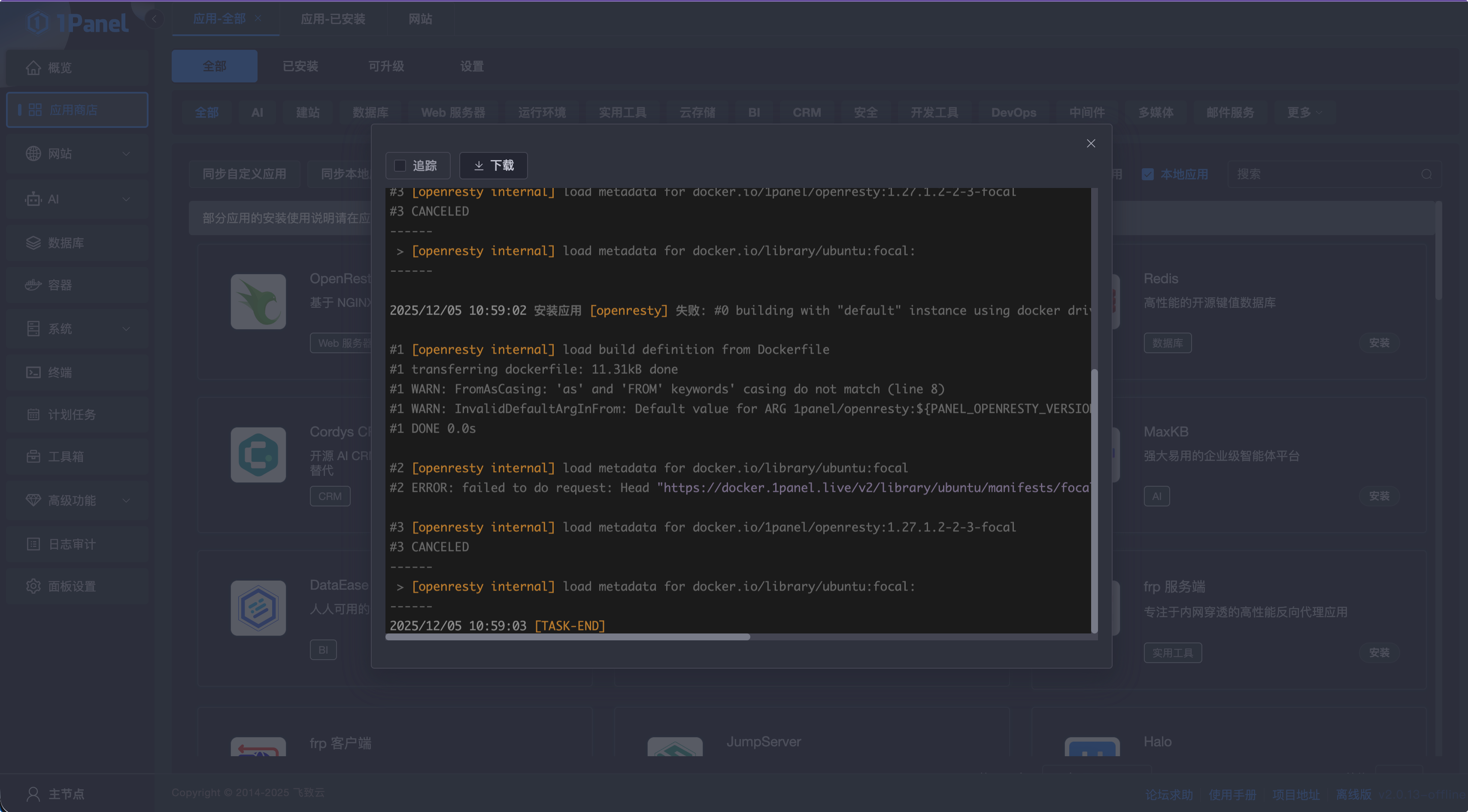 1Panel 版本:2.0.13离线版