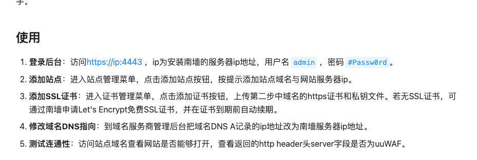 1panel 安装 uuwaf 后 不知道 用户名和密码,麻烦告诉 下