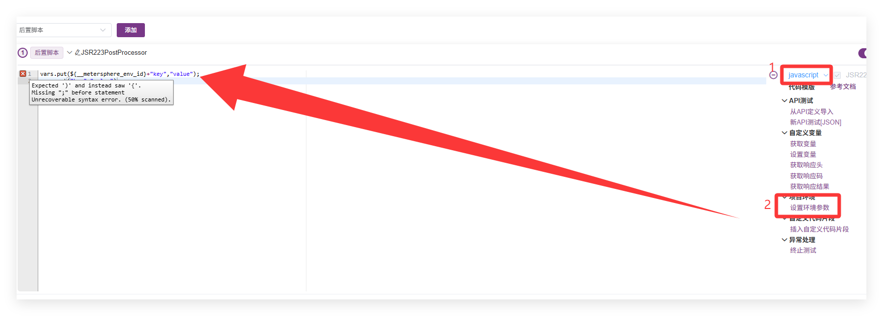 目前系统提供的添加全局环境变量示例是beanshell,如果使用javascript好像有那个提示,不过貌似也能设置正常