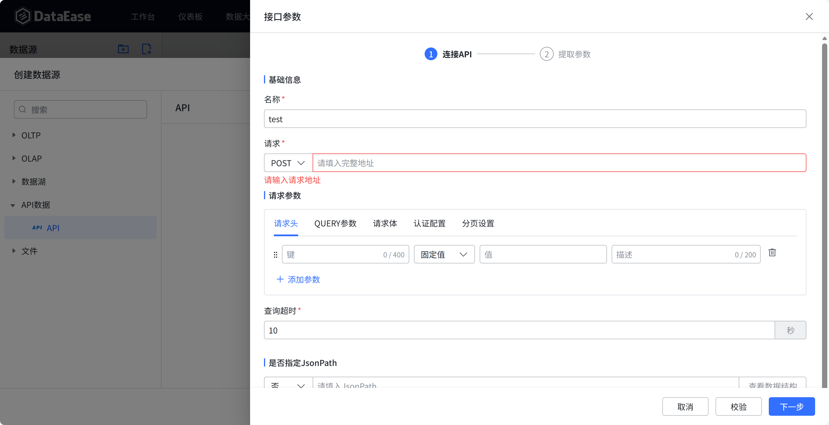 DataEase 支持创建 RESTful API 数据源(如 GET/POST 请求)
