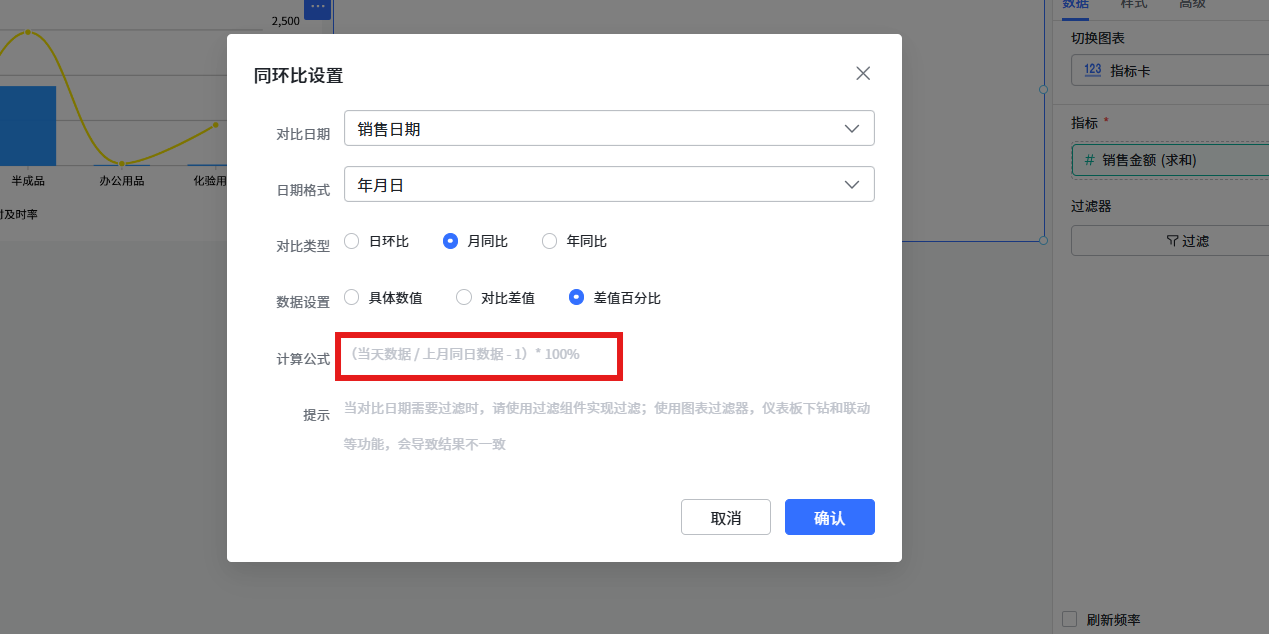 客单价计算字段里公式是sum(销售额)/sum(有效订单) 指标卡选择环比同比都是这样,出现啥问题了,怎么解决