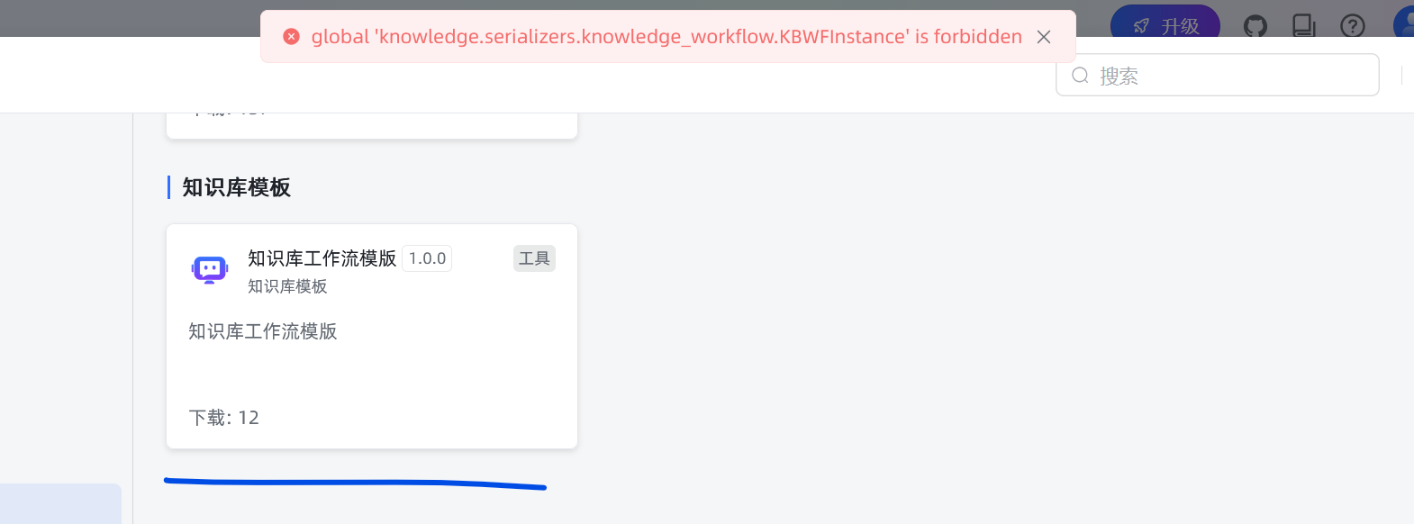 maxkb 添加工具商店的知识库模板时,报错:global 'knowledge.serializers.knowledge_workflow.KBWFInstance' is forbidden