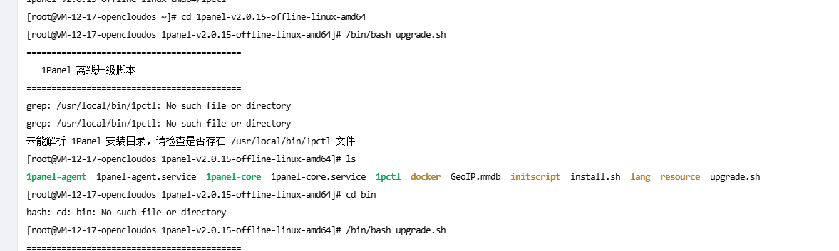 未能解析 1Panel 安装目录,请检查是否存在 /usr/local/bin/1pctl 文件