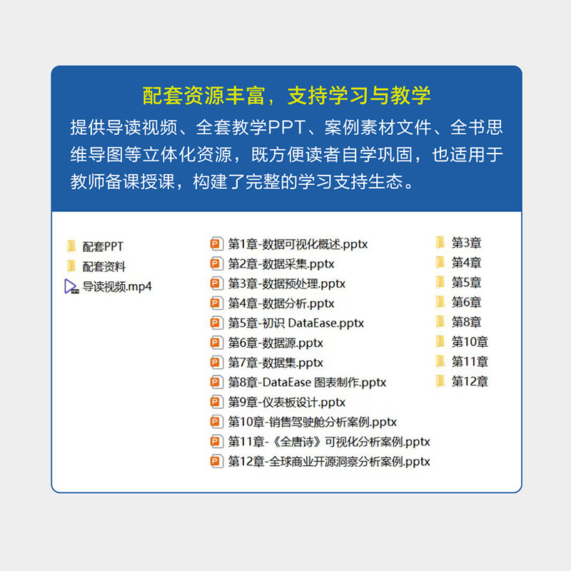 理论+工具+实战,一站式打通数据可视化全链路,配套视频、PPT、案例素材完整覆盖。