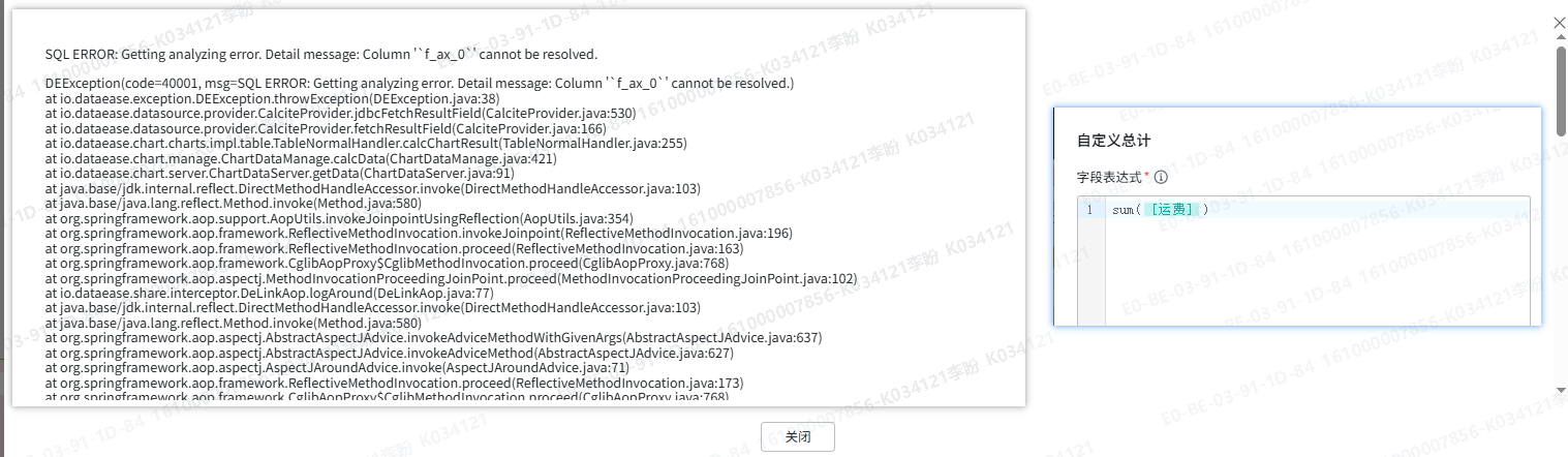 您什么部署方式,什么类型的数据源,当前数据源对应的数据库函数sum()是支持的吗?