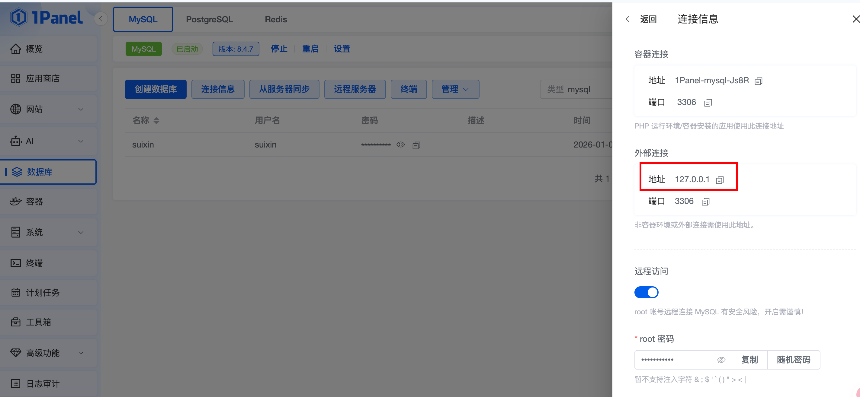 mysql 怎么设置公网访问,这里的外部链接一只是本地