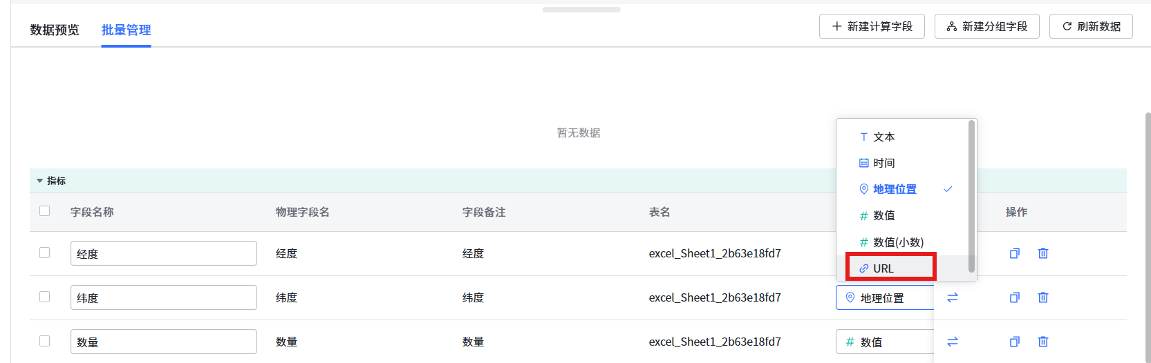 连接数据源,图片地址字段放到数据集里面,选中url类型在明细表展示就可以,