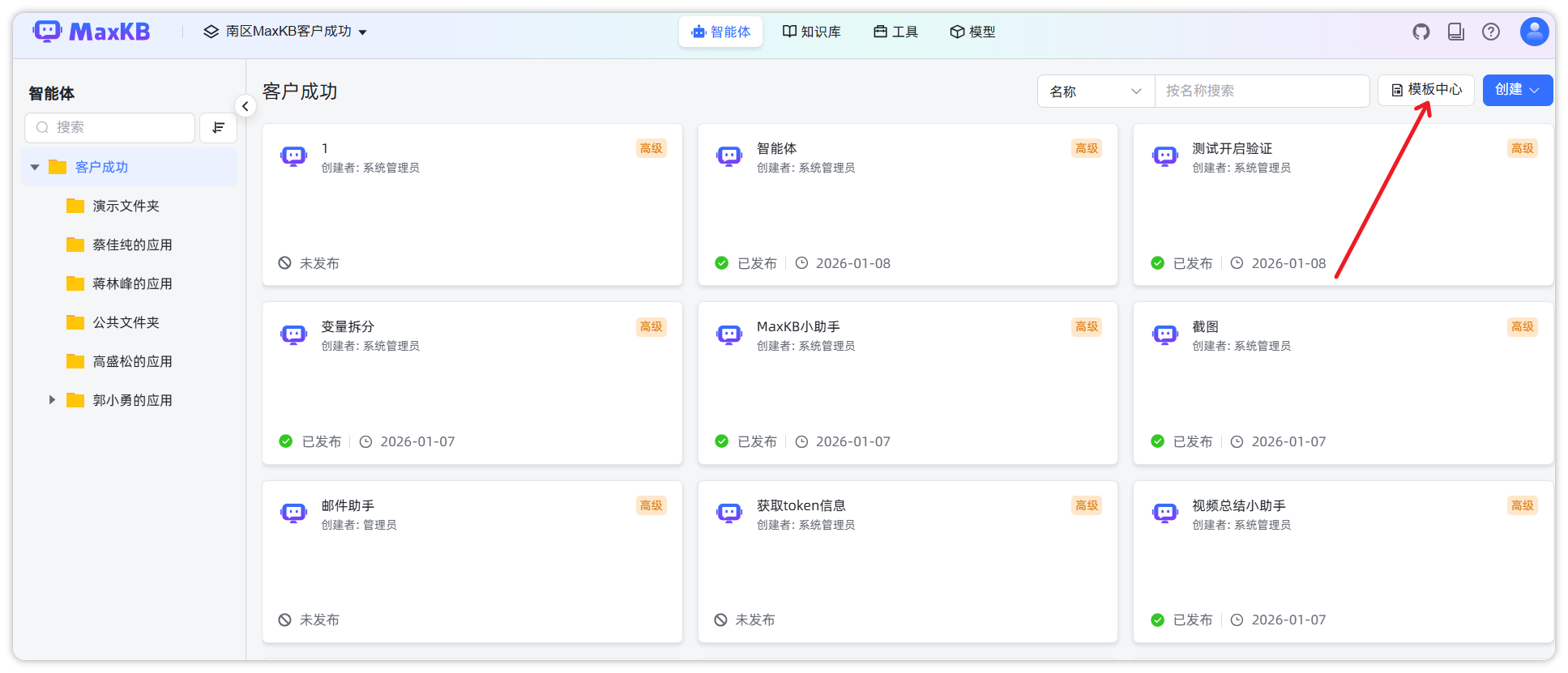 需要升级至v2.5.0版本,从“智能体”-“模板中心”添加。