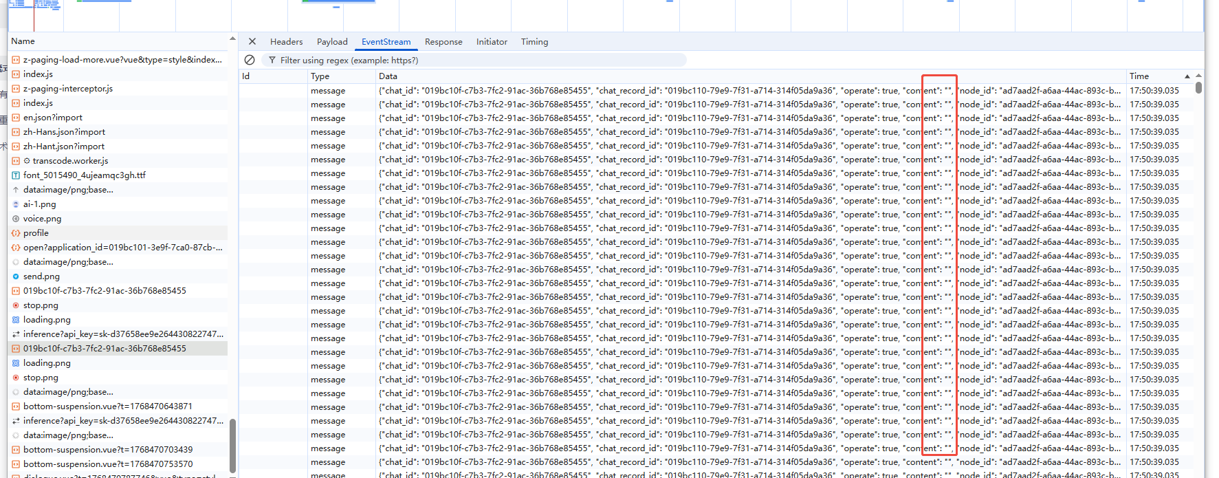 这是流式输出过程中正常的返回,代表模型也正在思考,如果不想要展示这么多空值,可以关闭流式输出